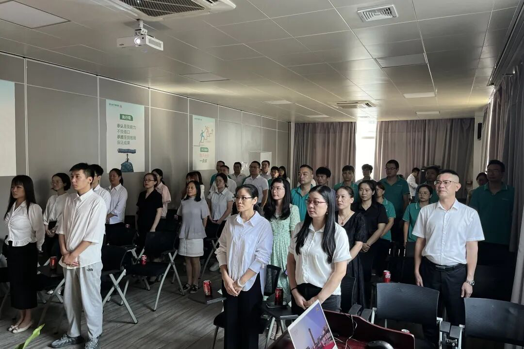 9時整,紀念大會正式開始。全體員工起立高唱國歌,注視著屏幕中天安門廣場上冉冉升起的五星紅旗,深切緬懷為民族獨立和人民解放英勇獻身的革命先烈。